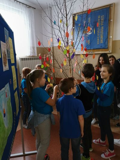 W naszej szkole to święto obchodzimy po raz trzeci. Dzień 21 listopada był kolorowy i radosny. Wolontariuszki przypinały dzieciom w klasach I-III UŚMIECHNIĘTĄ BUŹKĘ, która przez cały dzień przypominała, że mamy być uprzejmi w stosunku do siebie. Powstało szkolne Drzewo Życzliwości, na które uczniowie zawieszali listki z życzliwym zadaniem (np. przytul cztery osoby, powiedz coś miłego koleżance ubranej na czerwono). Kolorowe listki wywołały pozytywne zamieszanie i uśmiech na twarzy. Uczniowie chętnie dzielili się uściskami ze sobą, nauczycielami i pracownikami szkoły. Każdy tego dnia doświadczył czegoś miłego.